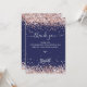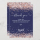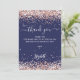 Un arrière - plan bleu marine, décoré de confettis d'or rose. Script écrit à grande main et texte : Merci. Personnalisez et ajoutez votre note de remerciement et votre nom.