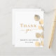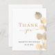 Un carte de remerciements pour un 50ème anniversaire (ou tout âge). Un arrière - plan blanc chic décoré d'eucalyptus dorés. Sur l'avant, script écrit et texte : Merci, votre texte, titre et une date. Texte de couleur dorée et noire. Retour : Personnalisez et ajoutez Votre note de remerciement et votre nom.
