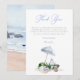 Définissez le ton d'une fête de mariage élégante et de rêve avec cette carte de remerciement pour pique-nique sur la plage inspirée de la côte. Avec une délicate illustration à l'aquarelle d'un cadre côtier avec un parasol chic, une table de pique-nique et des tons bleus doux, ce design sophistiqué et moderne est parfait pour une fête de mariage sur la plage, une célébration de destination ou une fête de jardin en plein air. La typographie script ajoute une touche d'élégance intemporelle, tandis que l'esthétique neutre complète une variété de thèmes, du bohème au minimaliste, du luxe au classique.