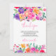 Envoyez vos sincères remerciements avec cette carte de remerciement de soirée de mariage en aquarelle florale lumineuse de jardin rose gras avec des fleurs peintes à la main rose, rouge, violet, orange et du feuillage vert feuilles d'eucalyptus et une police de caractères moderne à pinceau.