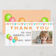 Carte de remerciement photo d'anniversaire avec drapeau guirlande ballon. Design amusant avec des ballons de fête colorés et des drapeaux de guirlande. Ajoutez votre photo et votre texte.