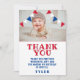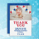 Drapeaux de guirlande mignons rouge bleu Enfants Photo Anniversaire Carte de remerciement. La carte comporte des drapeaux de guirlande rouges, bleus et blancs sur la photo. Personnalisez la carte avec la photo et le nom de l'enfant. Vous pouvez également modifier le message de remerciement et écrire le vôtre si vous le souhaitez.