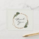 Carte de remerciements mariage budget avec cadre géométrique or entouré de verdure et de fleurs blanches. Utilisez le modèle pour ajouter votre message personnalisé. Un design non photo qui est parfait pour un couple marié qui veut des cartes de remerciement sans photos. Ce design botanique est parfait pour un mariage boho moderne en été. Cadre avec l'aimable autorisation de :<a href="http://www.freepik.com">Conçu par Freepik</a>