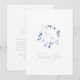 This elegant dusty blue wedding thank you card features a delicate watercolor floral monogram wreath paired with refined serif and script typography. The airy minimal layout creates a timeless fine-art look that perfectly complements modern, romantic, and classic wedding styles.