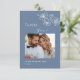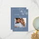 White line art flowers dusty blue photo thank you card.