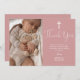 Ce carte de remerciements de baptême de script rose rose poussiéreux peut être personnalisé avec votre photo spéciale et vous remercier ensemble de message dans des lettres chic. Conçu par Thisisnotme©