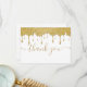 Carte de remerciement avec écriture élégante moderne avec des gouttes de paillettes dorées chic. Vous pouvez personnaliser avec votre propre message de remerciement au verso ou si vous préférez ajouter votre propre message manuscrit, supprimez simplement le texte. Un moyen parfait de dire merci ! Conçu par Thisisnotme©