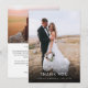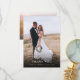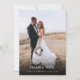 Élégant et simple modèle de carte de remerciement de mariage recto-verso avec une écriture manuscrite en typographie avec un cœur entre les mots. Ajoutez votre photo préférée en pleine page au recto et une autre photo au verso avec un message par défaut au verso qui est modifiable.