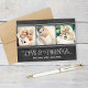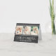 Modèle de carte de remerciement de mariage "Amour et Merci" de style tableau noir plié avec trois photos*, ainsi que du texte personnalisé et un message qui peut être personnalisé. Apparence de craie blanche manuscrite sur une image de fond de style tableau noir texturé.