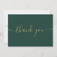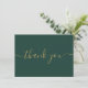 Écriture dorée simple moderne élégante sur une carte de remerciement vert émeraude. Vous pouvez personnaliser avec votre propre message de remerciement au verso ou si vous préférez ajouter votre propre message manuscrit, supprimez simplement le texte. Un moyen parfait de dire merci ! Conçu par Thisisnotme©