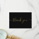 Carte de remerciement avec écriture dorée moderne élégante simple sur fond noir. Vous pouvez personnaliser avec votre propre message de remerciement au verso ou si vous préférez ajouter votre propre message manuscrit, supprimez simplement le texte. Un moyen parfait de dire merci ! Conçu par Thisisnotme©