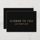 Elegant black 60th birthday party thank you card featuring "Cheers To You And Thank You" showcased in a blend of classic serif and simple gold typography. On the back, add your personal message and name, or leave blank for a hand-written note.