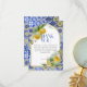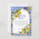 Conception inspirée de la Méditerranée avec des carreaux de style côte italienne Amalfi bleus et jaunes vifs avec des citrons peints à l'aquarelle et un cadre arqué à paillettes dorées fausses.