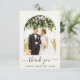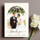 Elégant mariage crème légère avec votre photo de jour de mariage dans un cadre d'arc, "merci" dans un script chic avec des swashes et vos prénoms et date de mariage unis avec un coeur. Au contraire, ajoutez une photo supplémentaire, personnalisez votre message de remerciement et ajoutez vos noms dans un script signature.