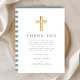 Personnalisé Elégant Carte de remerciements Baptême Garçon Croix Verte.