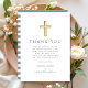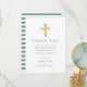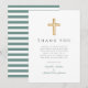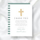 Carte De Remerciements Élégant Baptême Garçon Croix Verte