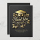 Carte De Remerciements Élégant Black Gold Grad Casquette Leaf Graduation