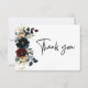 Elégant bleu marine bleu marine bordeaux Carte de remerciements floral mariage. Express votre gratitude dans le style avec cette élégante Carte de remerciements mariage à fleurs bleu, bleu marine et bordeaux. Avec un agencement floral sophistiqué dans des tons riches et romantiques, cette carte magnifiquement conçue ajoute une touche raffinée à votre correspondance post-mariage. La palette de couleurs intemporelle, associée à une typographie élégante, crée un look classique mais moderne qui complète parfaitement votre suite mariage. Une façon sincère de remercier vos invités pour leur amour et leur soutien, cette carte est parfaite pour l'automne, l'hiver, ou toute célébration de mariage élégante.