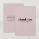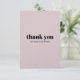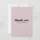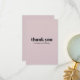Express your gratitude in style with this elegant wedding thank you card featuring a soft blush pink background and bold black "thank you" text. Minimalist and chic, this card is perfect for sending heartfelt thanks to guests who celebrated your special day with you. The design's simplicity and soft color palette make it a timeless choice that complements any wedding theme. Whether for a modern or classic celebration, this card adds a touch of sophistication to your thank-you notes.