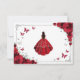 Red silver and white Quinceanera thank you card. Features brunette girl in ball gown dress, script font, silver butterflies, red roses and tiara. Perfect for an elegant princess style glam celebration. Personalize with your own details.