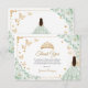 Sage green, gold and white Quinceanera thank you card. Features brunette girl in ball gown dress, script font, gold butterflies, roses and tiara. Perfect for an elegant princess style glam celebration. Personalize with your own details.