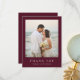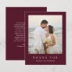 Classic style wedding thank you card featuring a simple yet elegant design in a deep burgundy color that is perfect for a fall wedding or a winter / Christmas wedding. Use the template to easily add your favorite photo.