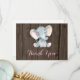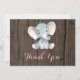 Élégant Éléphant Bébé Fille Rose et Gris Rustique Carte de Remerciement