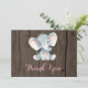 Carte De Remerciements Élégant Éléphant Bébé Fille Rose et Gris Rustique