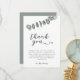 Elégant et rustique carte de remerciements à thème verdoyant avec aquarelle illustration de feuilles eucalyptus. Le message remercie les invités d'être venus à la douche et de leurs cadeaux. Idéal pour une douche neutre pour les hommes et les femmes en été.