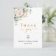 Une carte de remerciement moderne et élégante pour enterrement de vie de jeune fille. Un fond blanc chic. Décoré avec une fleur blanche (pivoine) et des feuilles d'eucalyptus aquarellées vertes, des brindilles, du feuillage et une brindille en or faux. Lettres noires et dorées. Sur le devant, le texte : Merci, nom et une date.