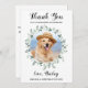 Merci de célébrer mes humains ! Laissez votre meilleur chien envoyer des notes de remerciement à vos amis et votre famille de votre mariage avec ces cartes de remerciement de photos modernes et rustiques, eucalyptus. Customisez ces cartes de remerciement mariage avec votre photo d'animal de compagnie préférée, photo de couple de mariage, et message personnel et noms. Ces cartes de remerciement uniques de mariage verdoyant feront une impression durable, vos invités, votre famille et vos amis! Consultez notre collection de mariages pour les annonces de mariages de chiens correspondants et le chien enregistrer les cartes de dates. DROIT D'AUTEUR © 2020 Judy Burrows, Black Dog Art - Tous droits réservés. Elégant Eucalyptus Pet Photo Dog Mariage Carte de remerciements