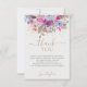 Exprimez votre gratitude avec notre carte de remerciement florale d'hiver élégante. Peinte à la main en aquarelle violette, bleue glacée, rose et verte sauge, ornée de fleurs audacieuses et de confettis de paillettes dorées fausses. Personnalisez votre message pour un toucher de chaleur.