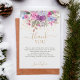 Exprimez votre gratitude avec notre Carte de remerciement Florale d'hiver Élégante. Peinte à la main en aquarelle violette, bleu glace, rose et vert sauge, ornée de fleurs audacieuses et de confettis de paillettes dorées fausses. Personnalisez votre message pour un touche de chaleur.