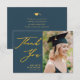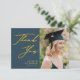 Elégant Script Gold Dusty Blue Minimalist Carte de remerciements de graduation photo. Donnez Wow 'Merci' à votre famille et amis avec cette belle carte de remerciements. Tous les textes sont pré-arrangés pour que vous personnalisiez facilement et rapidement avec vos propres mots.