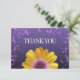 Montrez à vos invités votre appréciation pour leur rendre votre journée spéciale extra spéciale grâce à cet élégant carte de remerciements mariage à thème floral, qui comprend des lettrages blancs élégants avec confettis violet lavande et une marguerite africaine dorée sur un arrière - plan violet à noir. Ajoutez les noms, la date et le message des jeunes mariés. Design © W.H. Sim. Voir plus sur zazzle.com/expressionsoccasions