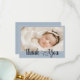 This elegant card in a soft dusty blue tone features your baby’s photo on the front with graceful heart script and space for a personal thank-you message on the back. The simple and timeless design adds a touch of sophistication, perfect for celebrating your baby shower with style. Ideal for new parents, baby shower hosts, or as a chic keepsake for family and friends.