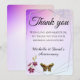 Exprimez votre gratitude sincère avec cette élégante carte de remerciement plate, dotée d'un fond lavande doux et d'un texte personnalisable sur le devant. Parfaite pour les mariages, les anniversaires, les baby showers, la reconnaissance des enseignants ou toute occasion où vous souhaitez partager vos remerciements. Personnalisez avec votre propre message, noms ou date pour le rendre vraiment unique. Un choix magnifique pour ceux qui aiment les tons pastel et les dessins intemporels inspirés des fleurs.