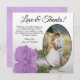 Ces belles cartes de remerciement de mariage sont une merveilleuse façon de montrer votre appréciation à vos amis et à votre famille pour la célébration avec vous lors de votre journée spéciale. Ils présentent votre photo mariage dans un cadre ovale avec un seul rose lilas violet à longue tige sur son côté réfléchissant dans l'eau. Le titre dit "Amour & Merci" avec la place pour une note et signature personnalisée. Classiques, romantiques et sophistiquées, ces cartes sont le moyen idéal de conclure votre fête mariage.