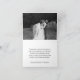 Cette belle carte est la façon parfaite de remercier vos invités mariages d'avoir fait partie de votre journée spéciale. L'avant est ornée d'un élégant rose couleur violet lilas sur son côté qui se réfléchit dans l'eau avec un beau titre de script "merci". À l'intérieur, vous pouvez télécharger votre photo mariage ainsi qu'une petite note et une signature. Belle fin à un nouveau commencement.