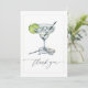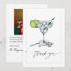 Dites "merci" avec style et charme en utilisant cette élégante carte de remerciement pour un enterrement de vie de jeune fille autour d'un Margarita. Avec son verre de margarita à l'aquarelle orné d'un quartier de citron vert, de glaçons, d'une paille et d'une bague de diamant, ce design allie avec élégance sophistication et une touche d'amusement. L'élégante écriture "merci" sur le devant est associée à un espace personnalisable pour une photo au verso, vous permettant d'ajouter une touche personnelle pour vos invités. Parfaite pour les enterrements de vie de jeune fille, les mariages ou les célébrations festives sur le thème des margaritas, cette carte est une façon charmante de montrer votre gratitude.