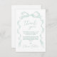 Les cartes de remerciement élégantes comprennent des rubans dessinés à la main avec des polices de script manuscrites modernes en vert clair, propres et simples. Idéal pour un mariage romantique moderne, mariage fantaisiste unique, mariage décontracté élégant. Voir toutes les pièces correspondantes dans la collection.