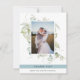 Elégant mariage photo merci carte à plat avec exquise aquarelle verdure présentant votre image. Mist bleu stripe présentant un message de remerciement. Retour avec beau monogramme de verdure avec initiales de couple. Capacité de recevoir des cartes avec votre propre message imprimé au dos ou d'effacer notre message et de recevoir le dos en noir afin que vous puissiez écrire un message individuel plus tard. Eucalyptus verdure dans un beau mélange de tons verts et bleus. Une partie de notre collection "Elegant Greenery Eucalyptus Mariage and Events" avec une variété de produits de coordination disponibles.