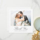 Ce carte de remerciements de mariage photo simple et chic présente un design élégant, minimaliste et moderne, avec une touche classique et intemporelle. L'avant présente vos noms sous votre photo préférée et un message de "Merci" transmis dans une police d'écriture gracieuse et fluide. Tout le texte est entièrement personnalisable, de sorte que vous pouvez modifier la couleur du "Merci" ou le texte des noms lorsque vous modifiez le devant pour afficher vos propres noms. Et bien que nous ayons inclus des prénoms et un nom dans notre exemple de texte sur le devant, vous pouvez choisir d'utiliser seulement vos prénoms, ou un format "M. et Mme.......", etc. Sur le devant, nous avons défini l'arrière - plan comme transparent, de sorte que la couleur du papier servira simplement de couleur de base. Vous pouvez choisir une couleur pour l'arrière - plan si vous préférez. La couleur de texte par défaut sur les deux côtés est gris foncé, mais vous pouvez la changer en noir ou en toute autre couleur si vous préférez un autre regard pour tout ou partie du texte. Vous pouvez également modifier la police et la taille du texte. Nous avons défini l'arrière - plan sur le dos comme blanc, mais vous pouvez également le modifier en transparent pour laisser la couleur du papier être la couleur de base, ou choisir une couleur spécifique qui convient à votre style. Nous avons mis un exemple de texte au dos pour que vous le remplaciez par votre propre message comme vous le jugez bon, mais s'il vous plaît ne vous sentez pas restreint par cela. Si vous préférez supprimer entièrement notre exemple de texte et garder le dos complètement vide afin que vous puissiez écrire une note manuscrite sur chaque carte à la place, vous pouvez le faire. Ou vous pourriez vouloir remplacer notre texte par votre propre message de gratitude et votre propre clôture, puis signer vos noms à la main lorsque vous recevez les cartes. Dans n'importe quel coque, n'oubliez pas de retirer tout l'échantillon/espace réservé de texte des deux côtés ainsi que notre photo échantillon ! Nous avons choisi matte comme choix papier par défaut, car il est bien adapté à l'écriture de votre propre message et ne sera pas suffisant. Vous pouvez bien sûr changer cela en semi-brillant, ou vous pouvez envisager de mettre à niveau vers l'un des beaux papiers Signature ou Premium de zazzle pour une touche spéciale. Utilisez les outils de montage intuitifs, votre photo préférée et votre inspiration pour faire ce mariage personnalisé Photo Carte de remerciements unique à vous!