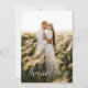 Une carte de remerciements mariage classique et chic au design tendance. L'avant vous permet d'ajouter votre propre photo mariage avec l'élégante superposition de texte "Merci". Sur le dos, dans un arrière - plan rose doux et poussiéreux, vous pouvez personnaliser votre propre message de gratitude aux invités, amis ou famille. Cette carte allie style intemporel et détails d'inspiration artistique moderne. Téléchargez votre photo préférée, ajustez le texte et ajoutez vos propres mots de coeur au verso. Parfait pour les couples à la recherche d'une façon élégante et personnelle de dire merci après leur journée spéciale.