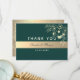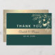 Express votre gratitude avec un charme intemporel en utilisant nos cartes de remerciement chic et vintages vert émeraude mariage. Ornées d'une dentelle dorée délicate, ces cartes marient élégance boho et simplicité moderne. Personnalisée avec un texte personnalisé, chaque carte devient une expression sincère d'appréciation. Découvrez la beauté des motifs vintages et des détails complexes, créant un souvenir mémorable pour vos proches. Laissez ces cartes élégantes transmettre vos remerciements dans le style, en ajoutant une touche de romantisme à votre correspondance post-mariage.