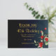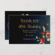 Carte De Remerciements Elégant Midnight Blue Gold Floral 40e anniversaire