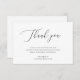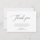 Simple carte de remerciements de sympathie pour un service funéraire / mémorial avec un design minimaliste avec "merci" en calligraphie noire sur un arrière - plan blanc. Utilisez le modèle pour ajouter facilement votre message personnalisé. Un design simple et sobre qui se révèle tout de même élégant.