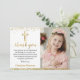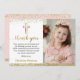 Carte De Remerciements Elégant Pink Gold Cross Girl Baptism Photo