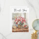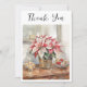 This elegant thank you card features a captivating watercolor illustration of red and white poinsettias in a gold container, accented by votive candles on a tabletop. The vibrant poinsettias infuse the card with warmth and natural beauty. The front showcases a script-font "Thank You" greeting, while the reverse is thoughtfully designed for personalization, offering ample space for a customized message or the "buy as shown" Christmas present thank you message. The artwork was AI-generated, with design direction provided by Susang6.