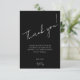 Envoyez un remerciement soigné qui correspond à votre élégant ensemble de fête d'anniversaire de 40 ans noir et blanc. Cette carte élégante présente une typographie de script moderne, une mise en page minimaliste et des détails personnalisés pour un look intemporel et raffiné. Parfait pour remercier vos invités après une célébration marquante, une fête cocktail ou un événement d'anniversaire inspiré du noir-tie.